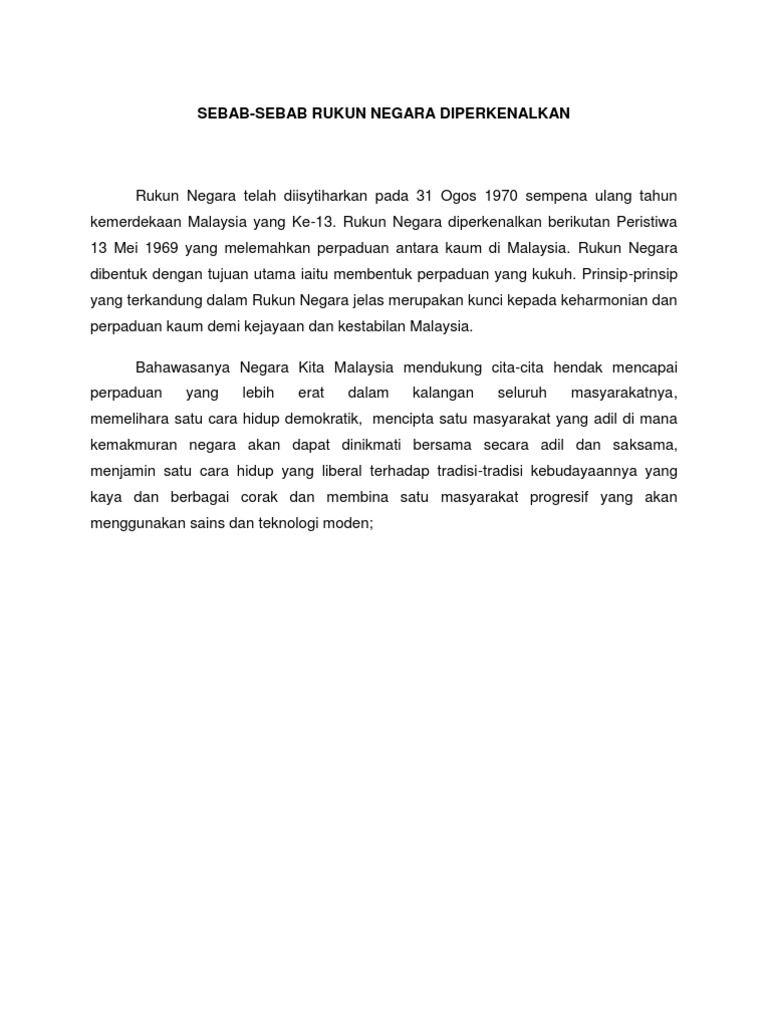 Sebab Rukun Negara Diperkenalkan Pdf